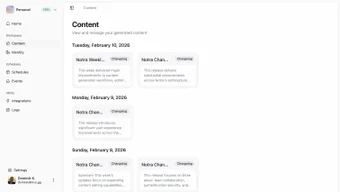 Notra, otomasyonu, akıllı taslağı ve sorunsuz entegrasyonu tek bir araçta birleştirerek gerçekten zaman kazandırır. Geliştiriciler, ürün yöneticileri ve büyüme ekipleri için günlük aktiviteleri zahmetsizce içeriğe dönüştürür. Sürekli güncellemeleri, onu herhangi bir verimlilik aracına ileri görüşlü bir ek haline getirerek daha fazla özellik vaat ediyor.